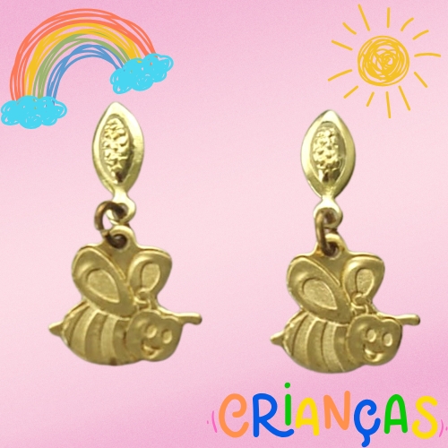 BRINCO NO BRUTO PRONTO PARA O BANHO - BRINCO DE PINO INFANTIL PINGENTE ABELHA 9X10MM (E1265) - PESO TOTAL 0,9GR - COMPOSIÇÃO: 100% LATÃO - BRU10338