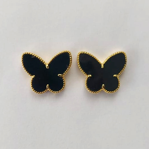 BRINCO FOLHEADO A OURO - BANHADO COM 5 MILÉSIMOS + VERNIZ DIAMOND - (BRJ4094) BRINCO DE PINO BORBOLETA PRETA 14MM - OURO372