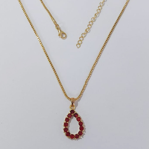 GARGANTILHA FOLHEADO A OURO - BANHADO COM 5 MILÉSIMOS + VERNIZ DIAMOND - CORRENTE 40CM PINGENTE COM MICRO ZIRCÔNIAS VERMELHAS 13X22MM- OURO1103
