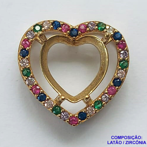 ACESSÓRIO NO BRUTO PRONTO PARA O BANHO - BASE PARA PINGENTE CORAÇÃO VAZADO CRAVEJADO EM MICROS ZIRCÔNIAS 10X10MM - PESO TOTAL 1,5GR - BRU0001911