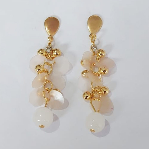 BRINCO FOLHEADO A OURO COM VERNIZ DIAMOND - BRINCO DE PINO BASE LISA COM BOLINHAS LISAS E BOLA BRANCA 60MM - OURO1127