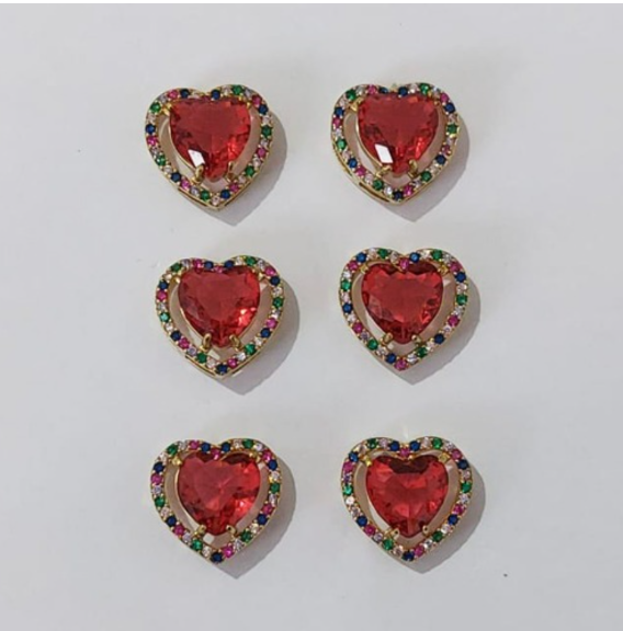 BRINCO NO BRUTO PRONTO PARA O BANHO - KIT COM 3 BRINCOS DE PINO COM BASE EM ALTA FUSÃO CRAVEJADA EM MICRO ZIRCONIA COLORIDA DE 14MM E PEDRA DE ZIRCONIAS DE10X10MMMM - PESO DO PAR 3.8GR - BRU3823