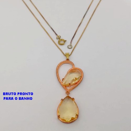 GARGANTILHA NO BRUTO PRONTO PARA O BANHO(CX175) GARGANTILHA COM CORRENTE VENEZIANA DE 45CM E PINGENTE COM BASE EM ALTA FUSÃO