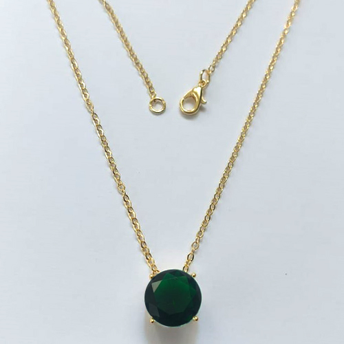GARGANTILHA FOLHEADA A OURO 5 MILÉSIMOS + VERNIZ DIAMOND - CORRENTE CADEADO 45CM E PINGENTE COM ZIRCÔNIA REDONDA VERDE ESCURA 12X12MM - OURO834