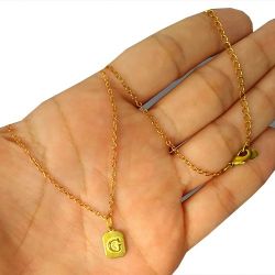Gargantilha No bruto Pronto Para Banho Com a Letra ''G'' Tamanho Aproximado: 44,5cm Extensor: 6,0cm Peso: 2,4 gramas REF: BRU128A