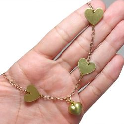 Gargantilha No Bruto Pronto Para Banho Com Corações Tamanho Aproximado: 44,5cm Extensor: 5,0cm Peso: 7,5 gramas REF: BRU1847