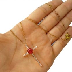 Gargantilha No Bruto Pronto Para Banho Com Corrente Elo Português Cruz Toda Cravejada Em Zircônias Tam da Corrente: 44,5cm Pingente: 4,0cm Peso: 3,0 gramas REF: BRU1306