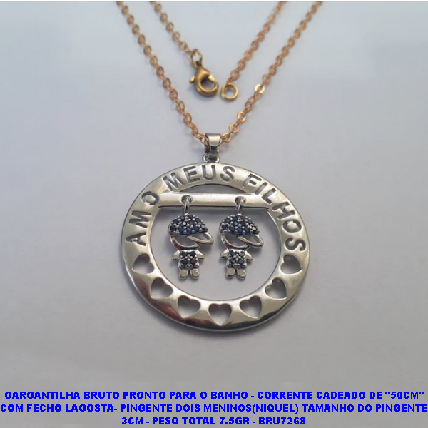 COM FECHO LAGOSTA- PINGENTE COM DOIS MENINOS(NIQUEL) TAMANHO DO PINGENTE