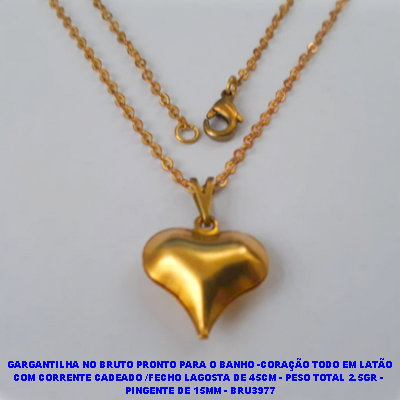 GARGANTILHA NO BRUTO PRONTO PARA O BANHO -CORAÇÃO TODO EM LATÃO