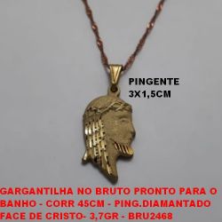 GARGANTILHA NO BRUTO PRONTO PARA O BANHO - CORRENTE 45CM - PING.DIAMANTADO -FACE DE CRISTO DUPLO - 3,7GR - BRU2468