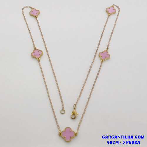 GARGANTILHA NO BRUTO PRONTO PARA O BANHO(COM CINCO PEDRA DE VAN CLEEF DE 12MM - COM CORRENTE CADEADO E FECHO LAGOSTA(PESO TOTAL 4.4GR - BRU24116