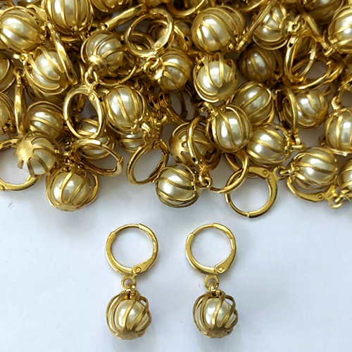 BRINCO NO BRUTO PRONTO PARA O BANHO - BRINCO ARGOLINHA DE PRESSÃO COM PINGENTE PÉROLA 9MM - PESO: 2,4GR - COMPOSIÇÃO: LATÃO / PÉROLA - BRU16317