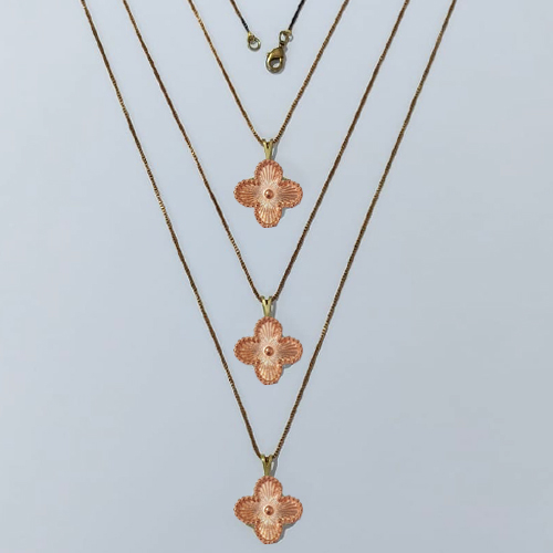 GARGANTILHA NO BRUTO PRONTA PARA O BANHO - KIT COM 3 CORRENTES VENEZIANAS 45CM E PINGENTES TIPO VAN CLEEF 15MM - PESO TOTAL 9,3GR - BRU24316