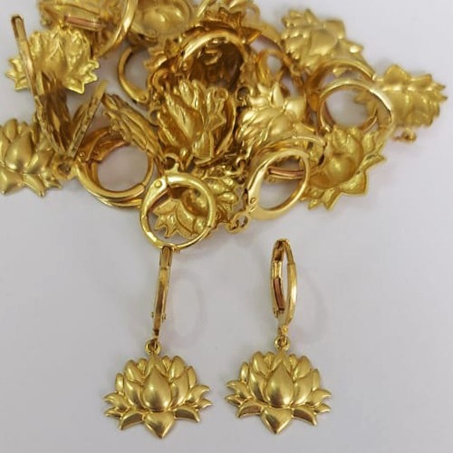BRINCO NO BRUTO PRONTO PARA O BANHO - BRINCO ARGOLINHA DE PRESSÃO (TRANQUETA) (3332) COM PINGENTE FLOR DE LÓTUS 12MM - PESO TOTAL 2,4GR - COMPOSIÇÃO: 100% LATÃO - BRU0003644