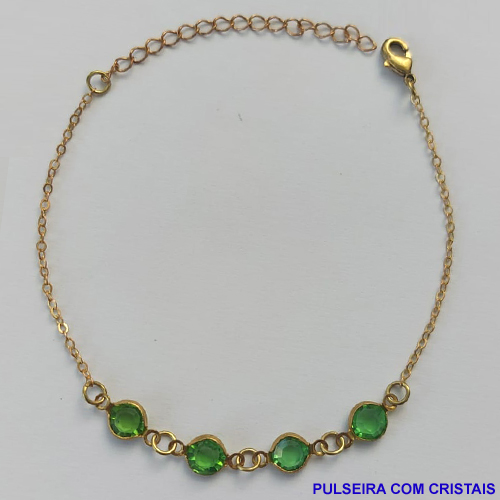 PULSEIRA NO BRUTO PRONTO PARA O BANHO - PULSEIRA COM CRISTAIS VERDES - TAMANHO 18CM - PESO 1.8GR - COM EXTENSOR E FECHO LAGOSTA BRU9036