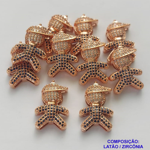 PINGENTE NO BRUTO PRONTO PARA O BANHO - PINGENTE MENINO COM BONÉ CRAVEJADO COM MICRO ZIRCONIAS - TAMANHO 25MM - PESO TOTAL 3,9GR - BRU0001441