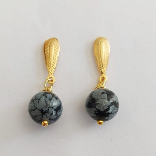 BRINCO FOLHEADO A OURO - BANHADO COM 5 MILÉSIMOS + VERNIZ DIAMOND - BRINCO PINO BASE DESENHADA PINGENTE PEDRA NATURAL 28MM - OURO1025