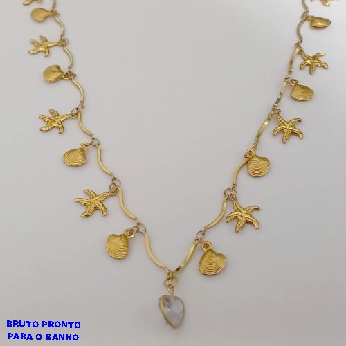 SHOCKER NO BRUTO PRONTO PARA O BANHO SHOCKER COM CONCHAS E ESTRELA DO MAR e um coração em zirconia (TAMANHO 40CM+EXTENSOR) PESO 7.5GR BRU24948