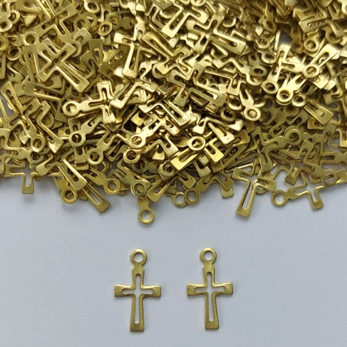 ACESSÓRIO NO BRUTO PRONTO PARA O BANHO - (V4027) CRUCIFIXO VAZADO 10MM COM UM FURO - PESO 0,3GR - COMPOSIÇÃO: 100% LATÃO (PEÇA VENDIDA POR UNIDADE) - BRU0003154