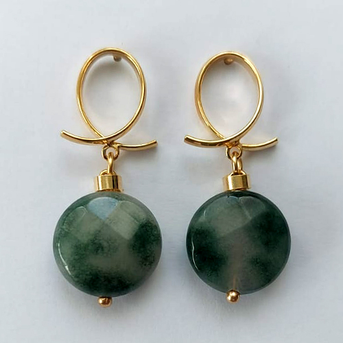 BRINCO FOLHEADO A OURO - BANHADO COM 5 MILÉSIMOS + VERNIZ DIAMOND - BRINCO DE PINO COM BASE VAZADA E PEDRA NATURAL 35MM - OURO353