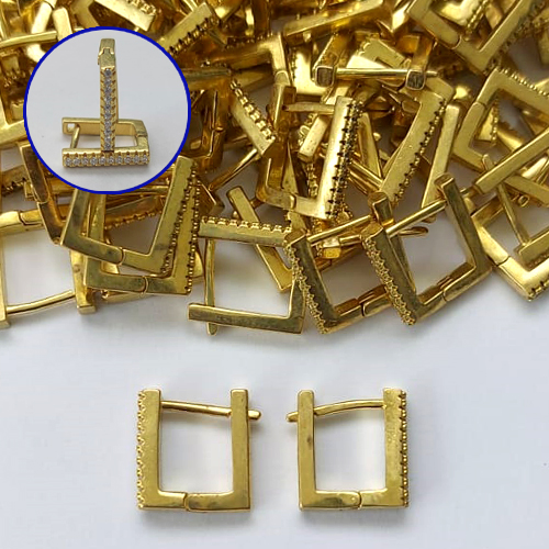 BRINCO NO BRUTO PRONTO PARA O BANHO - BRINCO ARGOLA (TRANQUETA) QUADRADA CRAVEJADA COM MICROS ZIRCÔNIAS - TAMANHO 12MM LARGURA 1,5MM - PESO TOTAL 2GR - COMPOSIÇÃO: LATÃO / ZIRCÔNIA - BRU16050