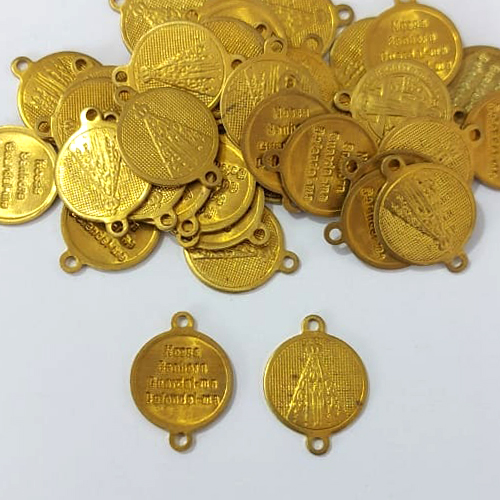 ACESSÓRIO NO BRUTO PRONTO PARA O BANHO - (3.1345AV2) ACESSÓRIO REDONDO NOSSA SRA APARECIDA COM DUAS ARGOLINHAS 13MM - PESO TOTAL 1GR - COMPOSIÇÃO: 100% LATÃO - BRU0003829