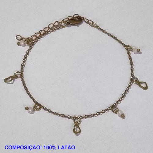 PULSEIRA NO BRUTO PRONTO PARA O BANHO - PULSEIRA FEMININA CORAÇÕES VAZADOS E BOLINHAS ROSA- TAMANHO 17CM - PESO 1.4GR E EXTENSOR - BRU001404A