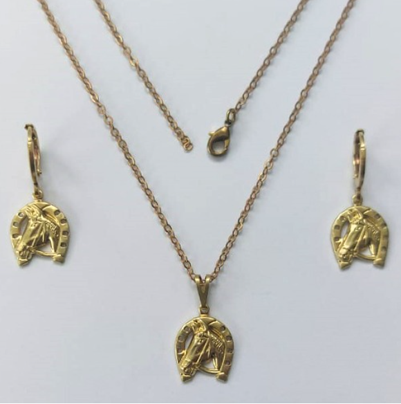 CONJUNTO NO BRUTO PRONTO PARA O BANHO(2515)PESO TOTAL - 4.9GR - COM CORRENTE CADEADO E BRINCO COM BASE ARGOLINHA DE PRESSÃO BRU0003361