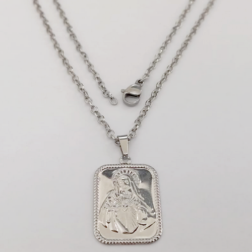 GARGANTILHA EM AÇO INOXIDAVEL(CX154) COM *(CORRENTE CADEADO DE 5OCM)*(C3.1073A1 )COM FECHO LAGOSTA-(PLACA 2X1,5CM - PLACA CORAÇÃO MARIA .(- AÇO0318