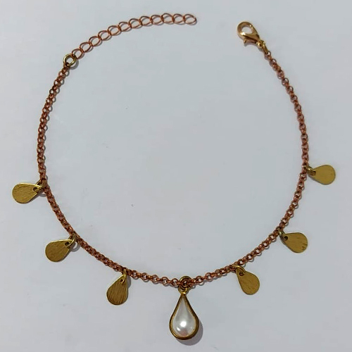 PULSEIRA NO BRUTO PRONTA PARA O BANHO - PULSEIRA PLAQUINHAS GOTAS E PÉROLA GOTA - TAMANHO 18CM + EXTENSOR - PESO 2,7GR- BRU24127