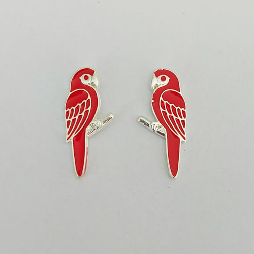 BRINCO FOLHEADO A PRATA COM 50 MILÉSIMOS + VERNIZ DIAMOND - BRINCO DE PINO ARARA VERMELHA ESMALTADA 9MM PRA841