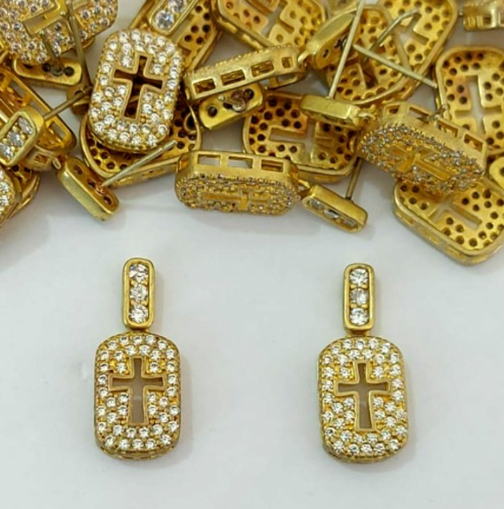 BRINCO NO BRUTO PRONTO PARA O BANHO LATÃO - (CX.149) BRINCO DE PINO CRAVEJADOS COM MICROS ZIRCÔNIAS - TAMANHO 12MM - PESO TOTAL 2.9GR BRU23948