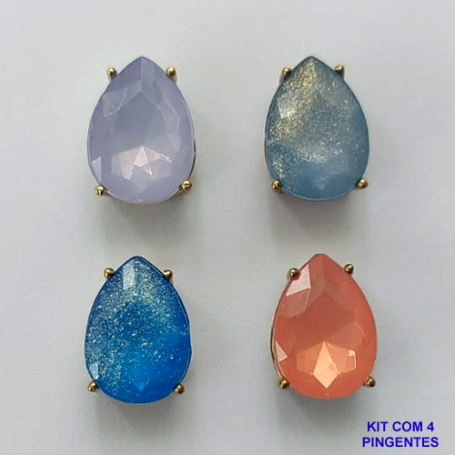 PINGENTE NO BRUTO PRONTO PARA O BANHO - KIT COM 4 PINGENTES COM RESINAS GOTAS 10x14MM - PESO TOTAL 5GR BRU15767