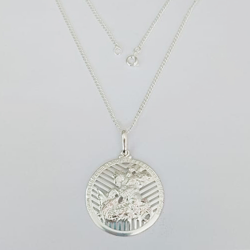 GARGANTILHA FOLHEADO A PRATA COM 50 MILÉSIMOS + VERNIZ DIAMOND CORRENTE 45CM COM PINGENTE SÃO JORGE 35MM PRA785