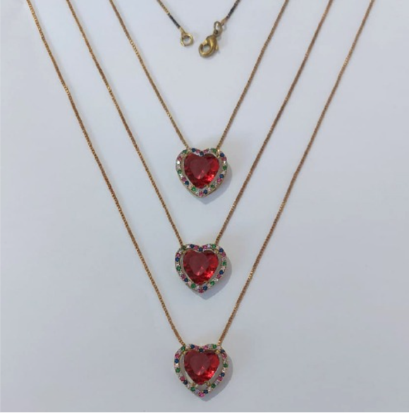 GARGANTILHA NO BRUTO PRONTA PARA O BANHO - KIT COM 3 GARGANTILHAS COM CORRENTES VENEZIANA 45CM E PINGENTES COM BASES EM ALTA FUSÃO CORAÇÃO CRAV. COM MICROS ZIRCÔNIAS COLORIDA E PEDRA EM ZIRCÔNIA 10MM - PESO TOTAL 3,4GR/UNIDADE -