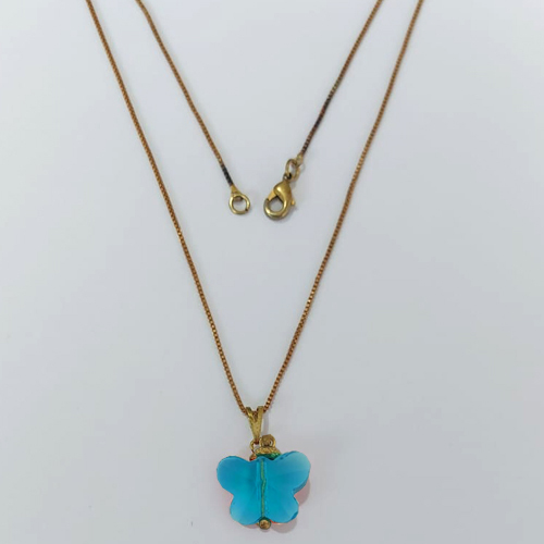 GARGANTILHA NO BRUTO PRONTA PARA O BANHO - GARGANTILHA COM CORRENTE VENEZIANA 45CM - PINGENTE BORBOLETA VIDRO AZUL 15MM - PESO TOTAL 3,3GR - COMPOSIÇÃO: LATÃO / VIDRO - BRU24303