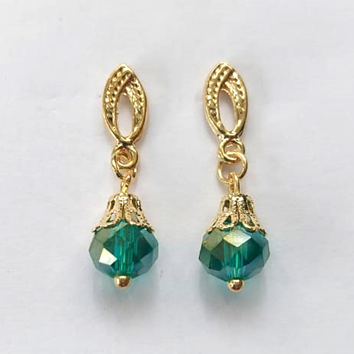 BRINCO FOLHEADO A OURO - BANHADO COM 5 MILÉSIMOS + VERNIZ DIAMOND - BRINCO DE PINO BASE OVAL E CRISTAL AUSTRÍACO 8MM - OURO456
