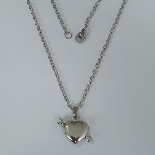 GARGANTILHA EM AÇO INOXIDÁVEL - CORRENTE DE 45CM (03) PINGENTE CORAÇÃO DUPLO COM FLECHA 20MM AÇO2318