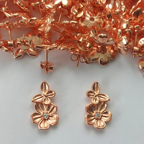 BRINCO NO BRUTO PRONTO PARA O BANHO - (CRIS) (KGC10) BRINCO DE PINO BORBOLETA COM FLOR COM ZIRCÔNIA CRISTAL 10X18MM - PESO TOTAL: 1,8GR - BRU15529