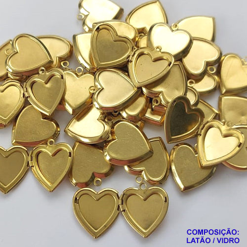 RELICARIO NO BRUTO PRONTO PARA O BANHO - RELICÁRIO EM FORMATO DE CORAÇÃO LISO TAMANHO 23X23MM - PESO TOTAL 3,1GR - BRU9642