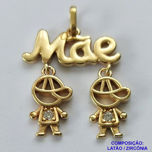 PINGENTE NO BRUTO PRONTO PARA O BANHO - PINGENTE MÃE COM DOIS MENINOS COM PEDRA EM ZIRCÔNIA (PX002435) - COMPOSIÇÃO: LATÃO / ZIRCÔNIA - TAMANHO 20MM - PESO TOTAL 2,3GR - BRU0001872