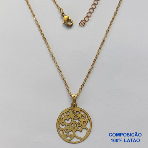 GARGANTILHA NO BRUTO PRONTO PARA BANHO - GARGANTILHA CORRENTE CADEADO 45CM + EXTENSOR E PINGENTE MANDALA VAZADA EM FOTO CORROSÃO 20MM - PESO: 2,4GR - BRU13522