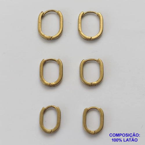 BRINCO NO BRUTO PRONTO PARA O BANHO - TRIO DE BRINCO - TAMANHOS 16/14/12MM - ESPESSURA 1,9MM TRIO DE ARGOLA OVAL DE PRESSÃO (TRANQUETA) - PESO TOTAL 3,7GR - BRU9493