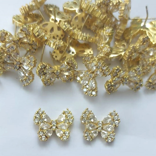 BRINCO NO BRUTO PRONTO PARA O BANHO - BRINCO DE PINO BORBOLETA CRAVEJADA EM MICROS ZIRCÔNIAS 17MM - PESO: 4,8GR - COMPOSIÇÃO: LATÃO / ZIRCÔNIA - BRU16111