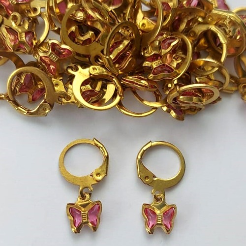 BRINCO NO BRUTO PRONTO PARA O BANHO - BRINCO ARGOLINHA DE PRESSÃO BORBOLETA EM VIDRO ROSA 8MM - PESO: 0,8GR - BRU15533