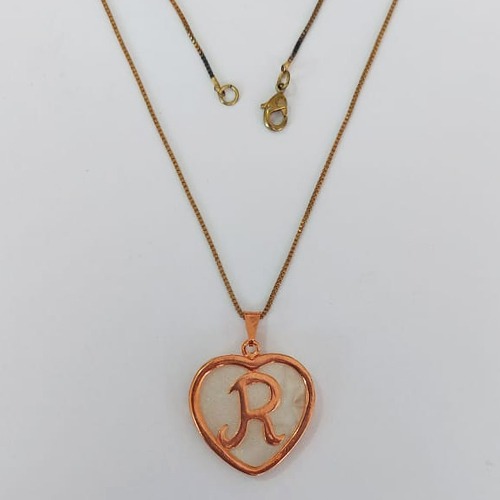 GARGANTILHA NO BRUTO PRONTO PARA O BANHO - (CX146) - COM CORRENTE VENEZIANA DE 45CM - CORAÇÃO LETRA R MADRÉ PÉROLA -23MM PESO: 5,7GR - BRU0003675