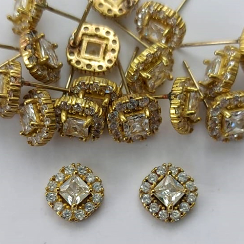 BRINCO NO BRUTO PRONTO PARA O BANHO - BRINCO DE PINO REDONDO CRAVEJADO COM MICROS ZIRCÔNIAS E PEDRA EM ZIRCÔNIA NO CENTRO 9MM - PESO: 1,4GR - COMPOSIÇÃO: LATÃO / ZIRCÔNIA - BRU15690