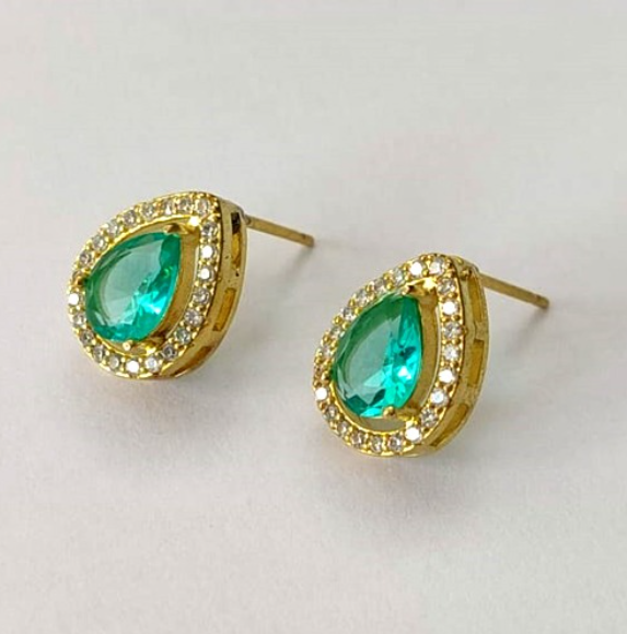 BRINCO NO BRUTO PRONTO PARA O BANHO - BRINCOS DE PINO COM BASE EM ALTA FUSÃO COM ZIRCÔNIA GOTA 6X8MM - PESO TOTAL 2.8gr- BRU0003312