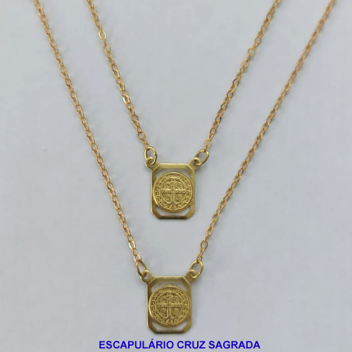 ESCAPULARIO BRUTO PRONTO PARA BANHO - PESO TOTAL 2,6GR COM CORRENTE CADEADO (E3116) ESCAPULÁRIO 12X9MM CRUZ SAGRADA - BRU8963