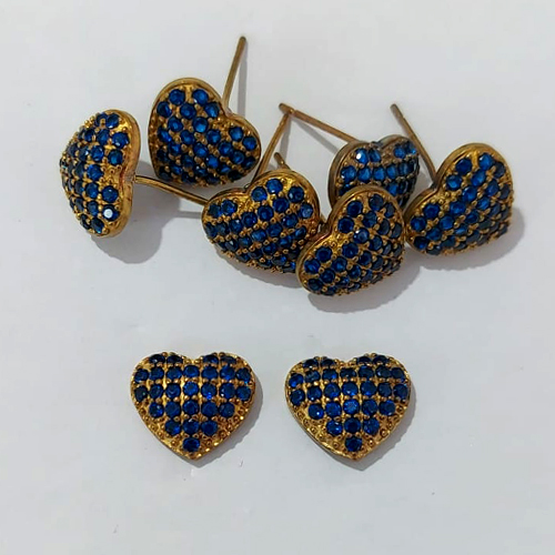 BRINCO NO BRUTO PRONTO PARA O BANHO - BRINCO DE PINO CORAÇÃO CRAVEJADO EM MICROS ZIRCÔNIAS AZUIS 10MM - COMPOSIÇÃO: LATÃO / ZIRCÔNIA - PESO 1,4GR - BRU24068